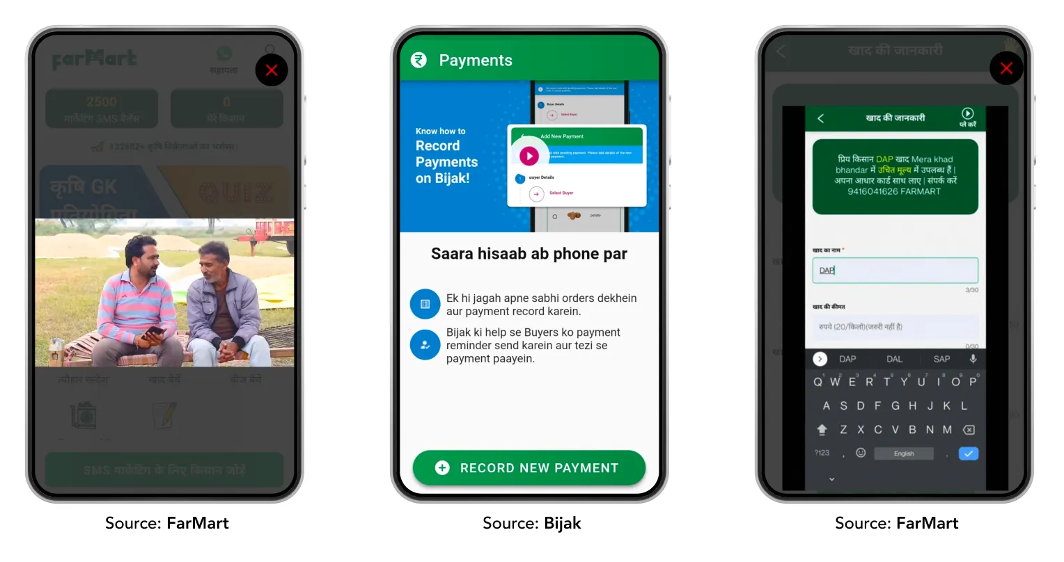 Each application I delved into depends extensively on visual cues. This is reflective of a common theme. An abysmally low rate of digital literacy plagues rural communities in India. Employing images is an appropriate and intuitive solution to effectively communicate ideas and actions to users.