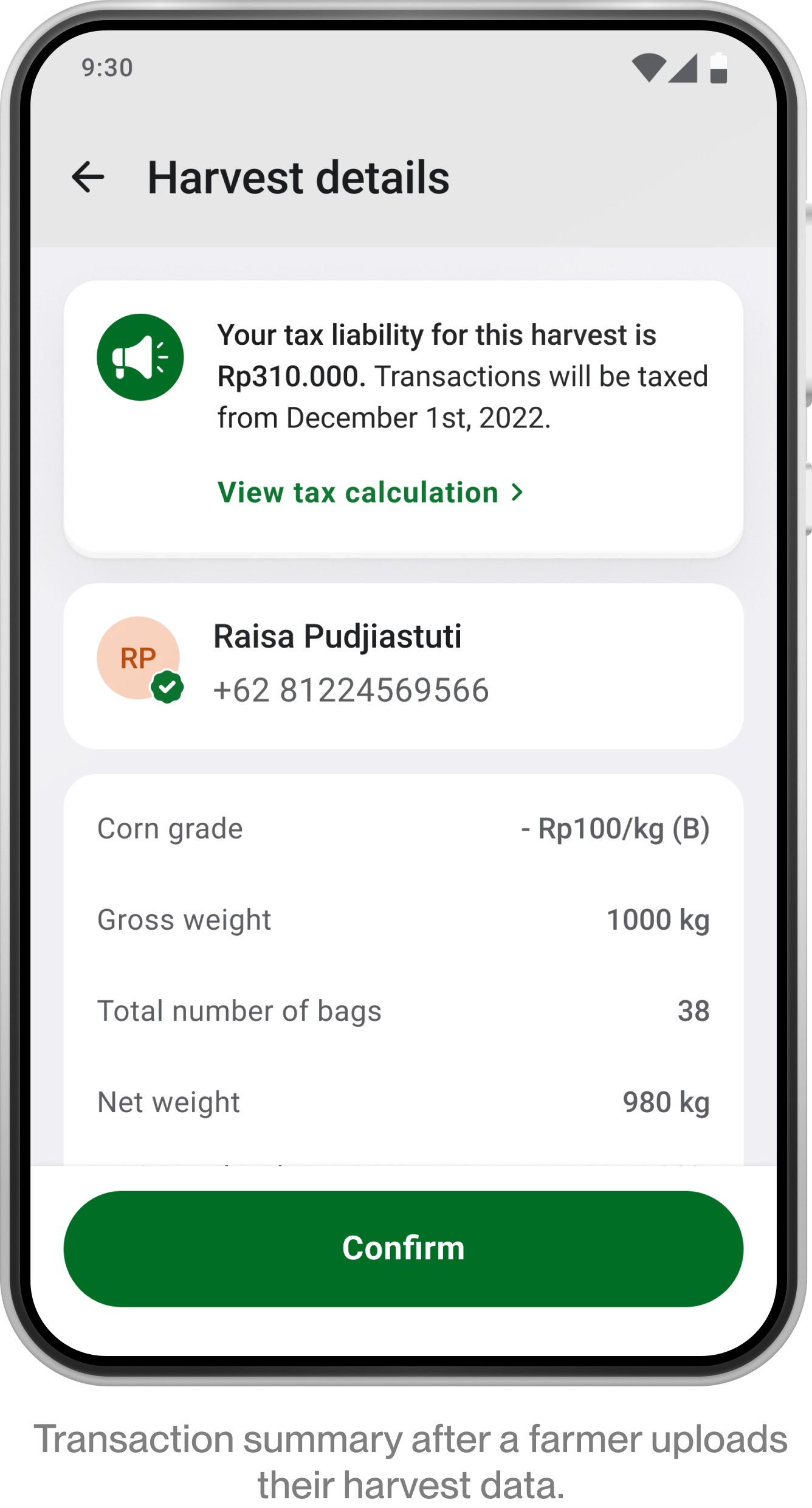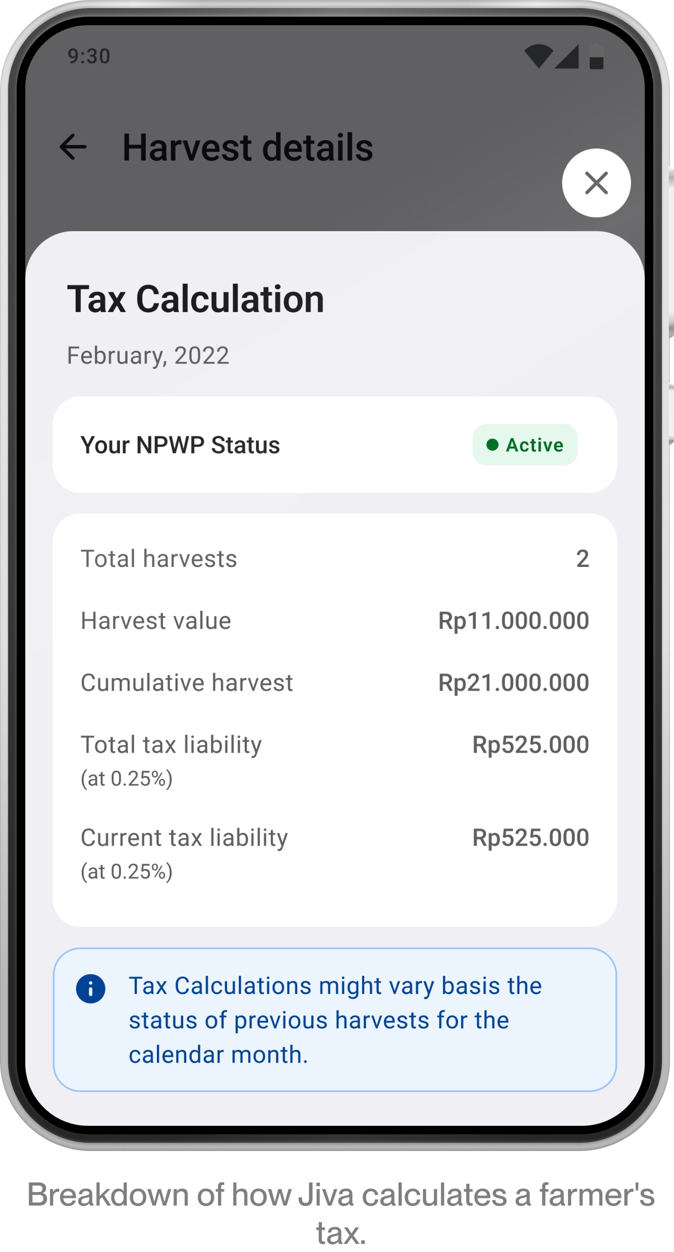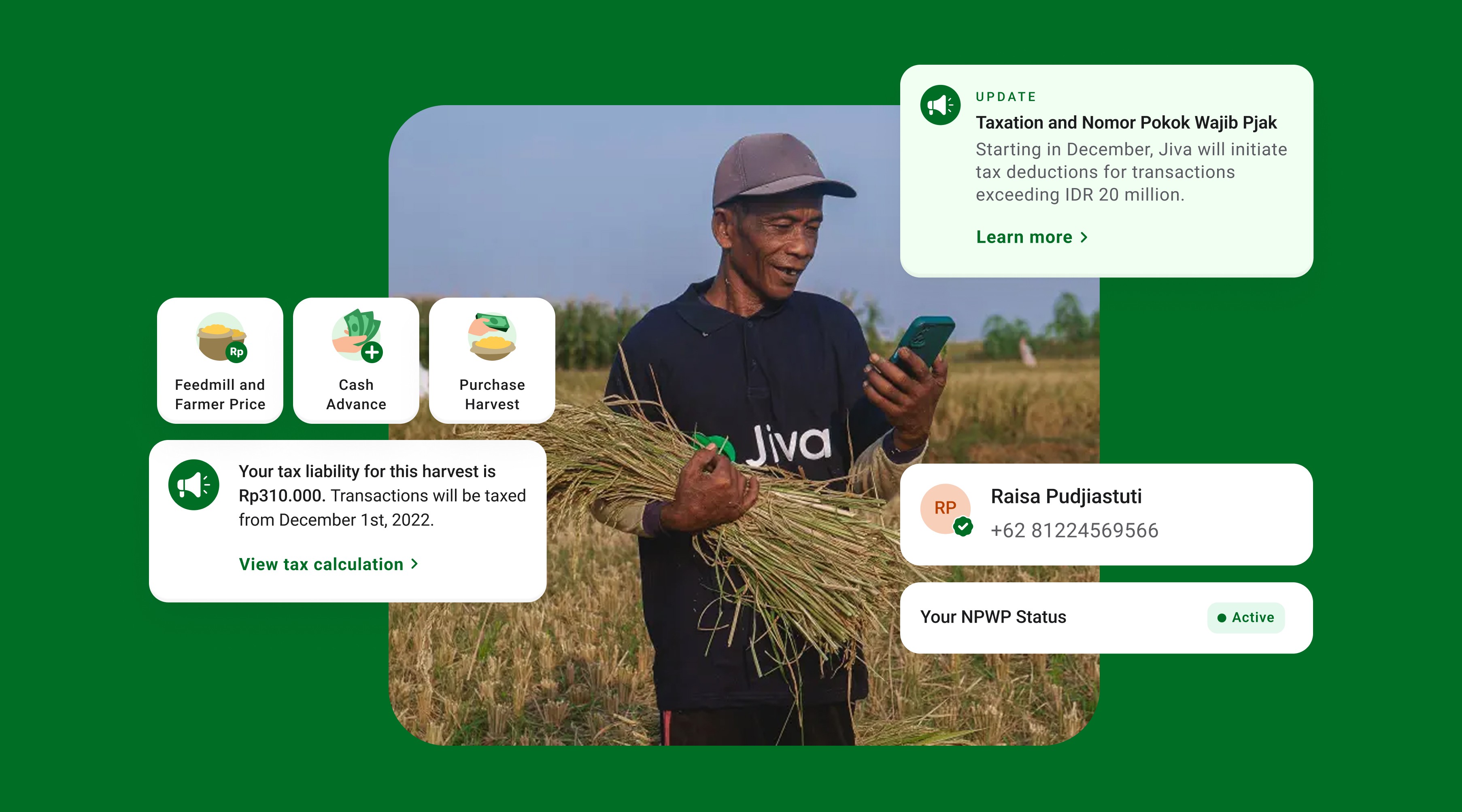 In 2022, new Indonesian tax regulations shifted responsibility for tax payments on transactions above IDR 20 million from digital platforms to individual farmers. For Jiva, this introduced regulatory and financial risk. For farmers, it introduced something more personal: tax deductions that would directly reduce their income.