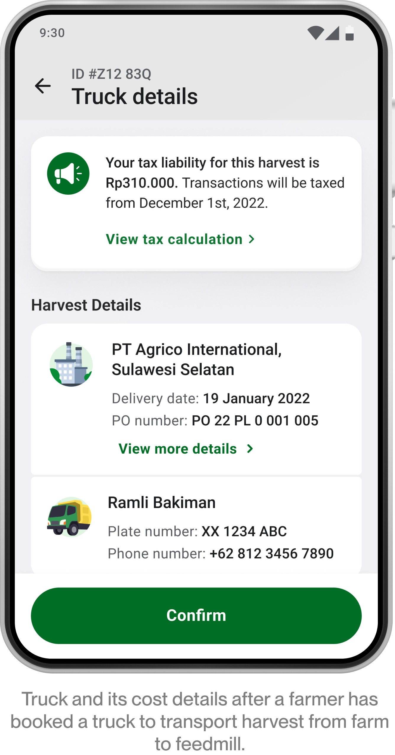 Truck booking confirmation
