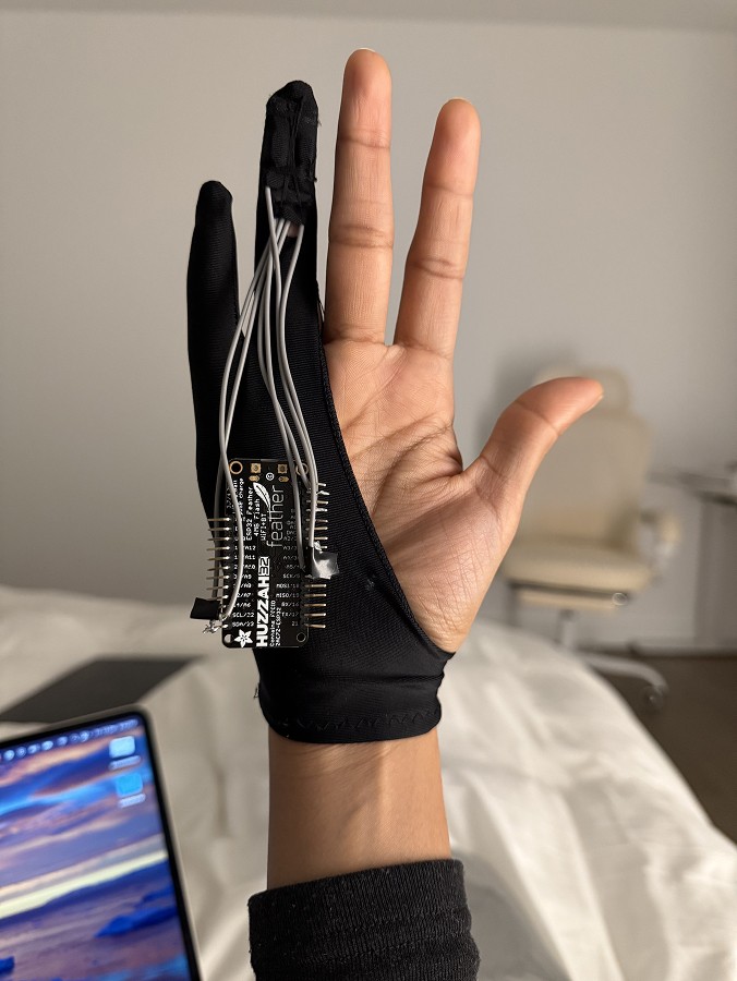 Revision: Added a stretchy glove with soft felt lining for the wearable component. Tested across 8 different finger sizes for consistent sensor contact.